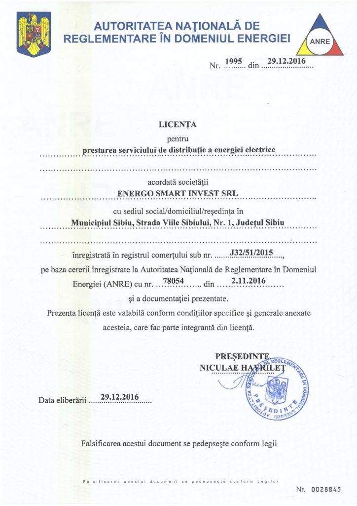 Suntem autorizați ANRE în domeniul instalațiilor electrice și a distribuției de energie electrică